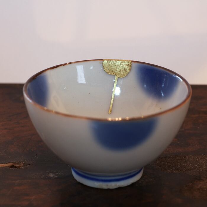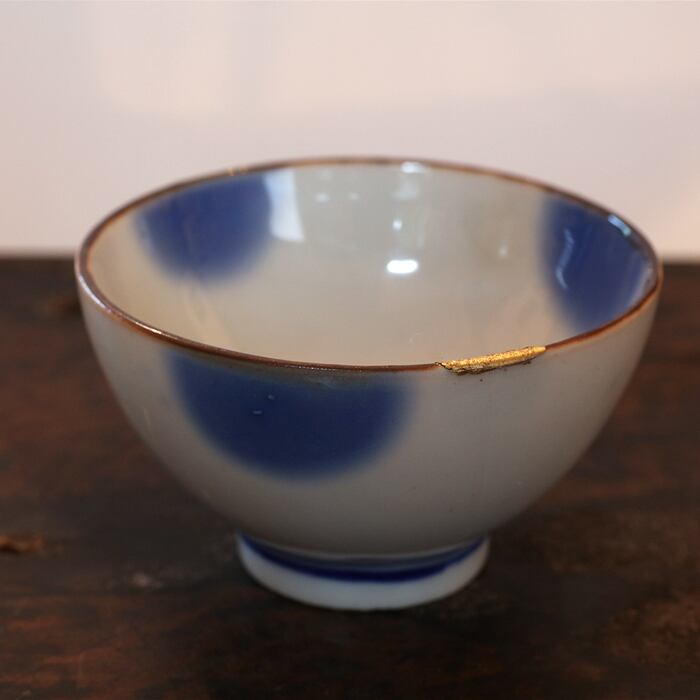古道具のお茶用の茶碗です。簡易金継ぎ(真鍮)
