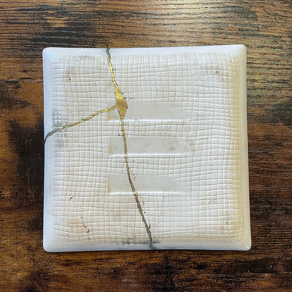 可愛らしい子供が遊ぶ様子が描かれた角皿です。