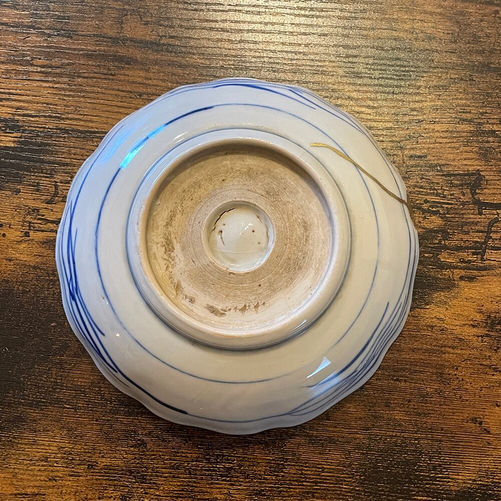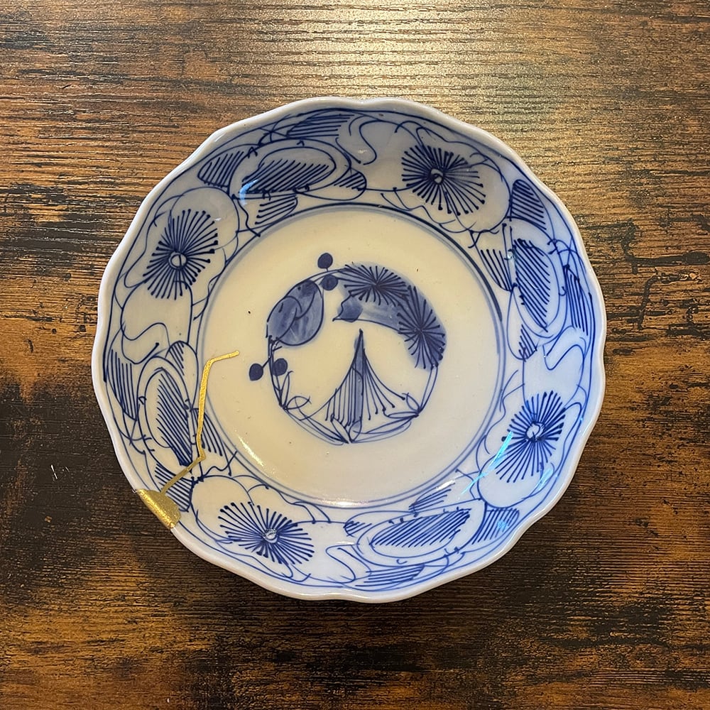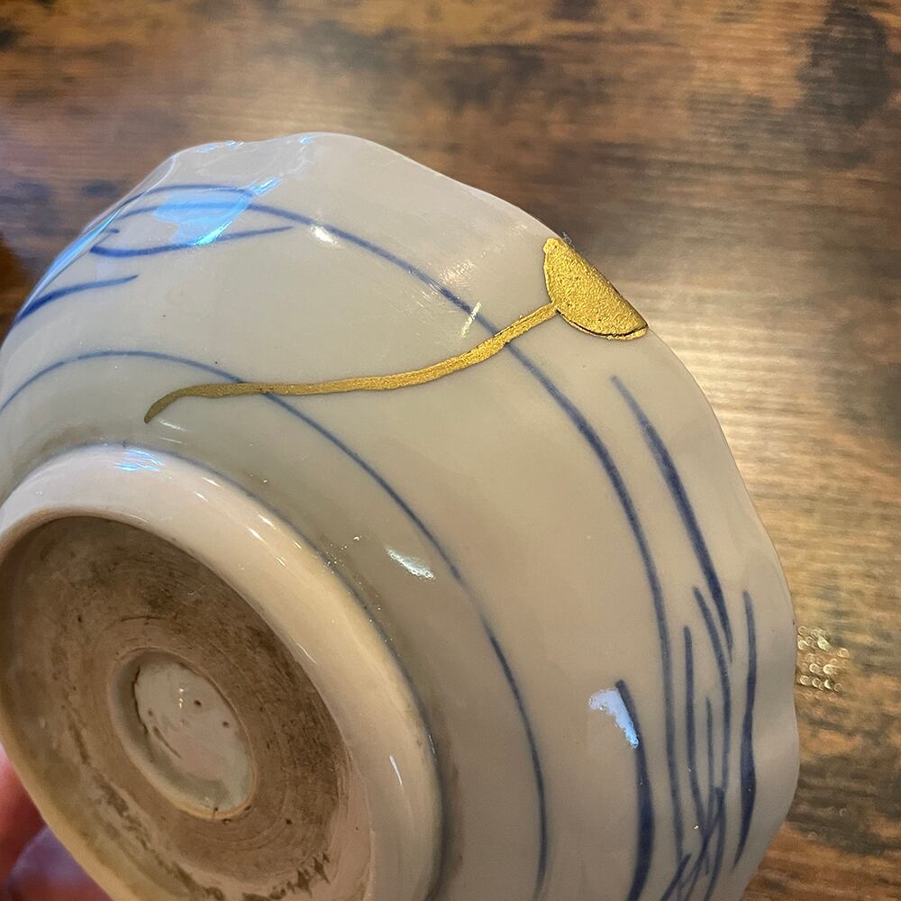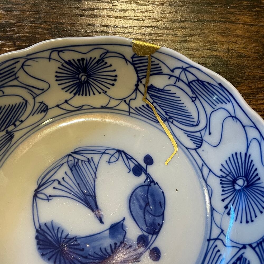 欠けと割れを金色(真鍮)で直しています。