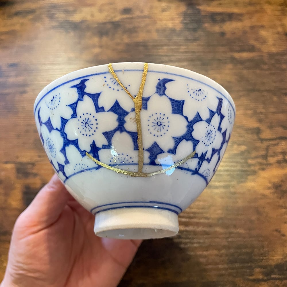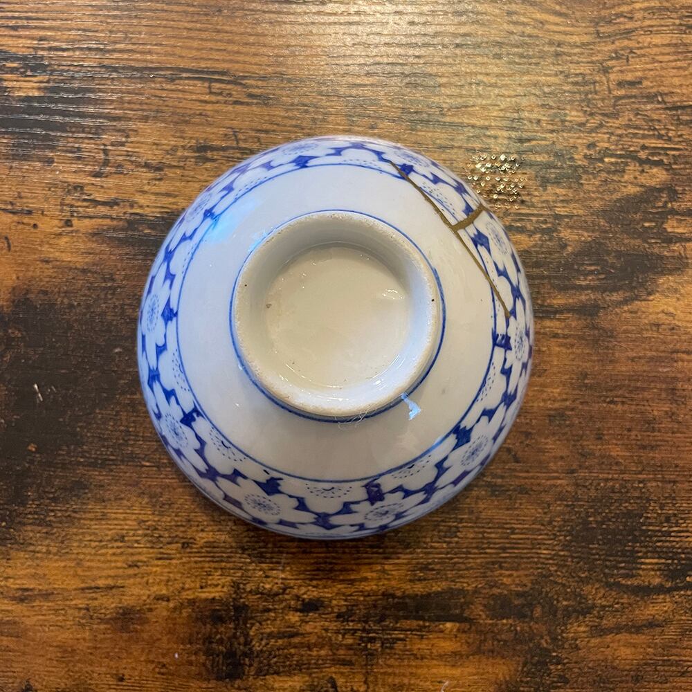 ヒビを金色(真鍮)で直しています。