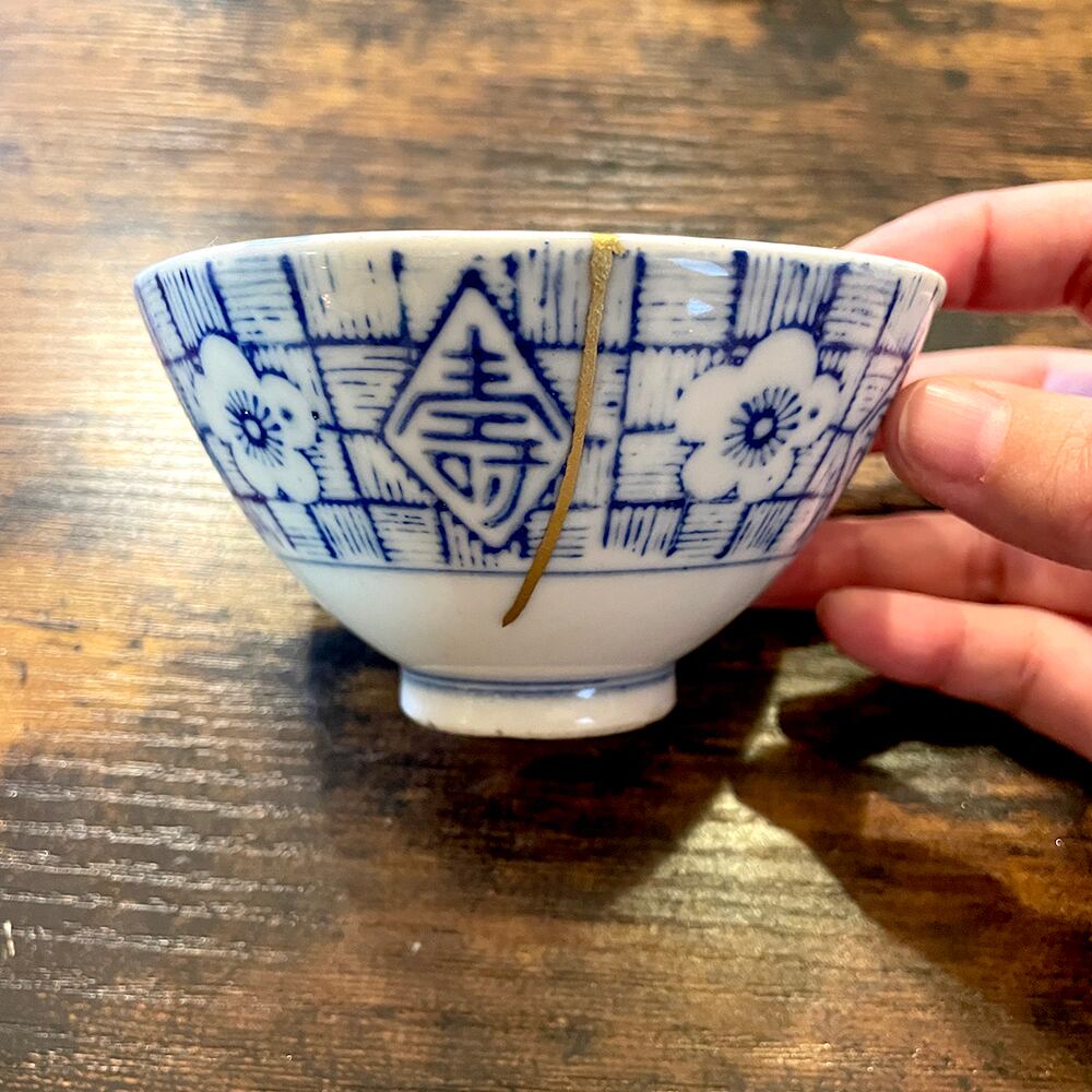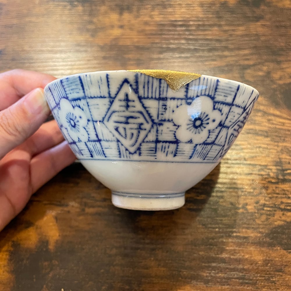 寿の文字に梅か桜の絵が描かれたなんともおめでたいご飯茶碗です。